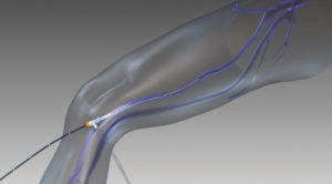 Elle permet de fournir de l’énergie thermique qui est contrôlée par un générateur, qui va chauffer la paroi veineuse par l’intermédiaire d’un cathéter. Ceci va aboutir à une évolution fibreuse et à l’occlusion de la lumière veineuse, à distance.